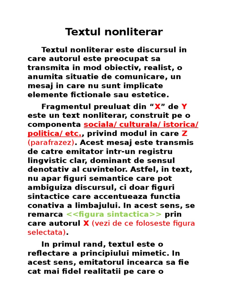 Textul Nonliterar Literar
