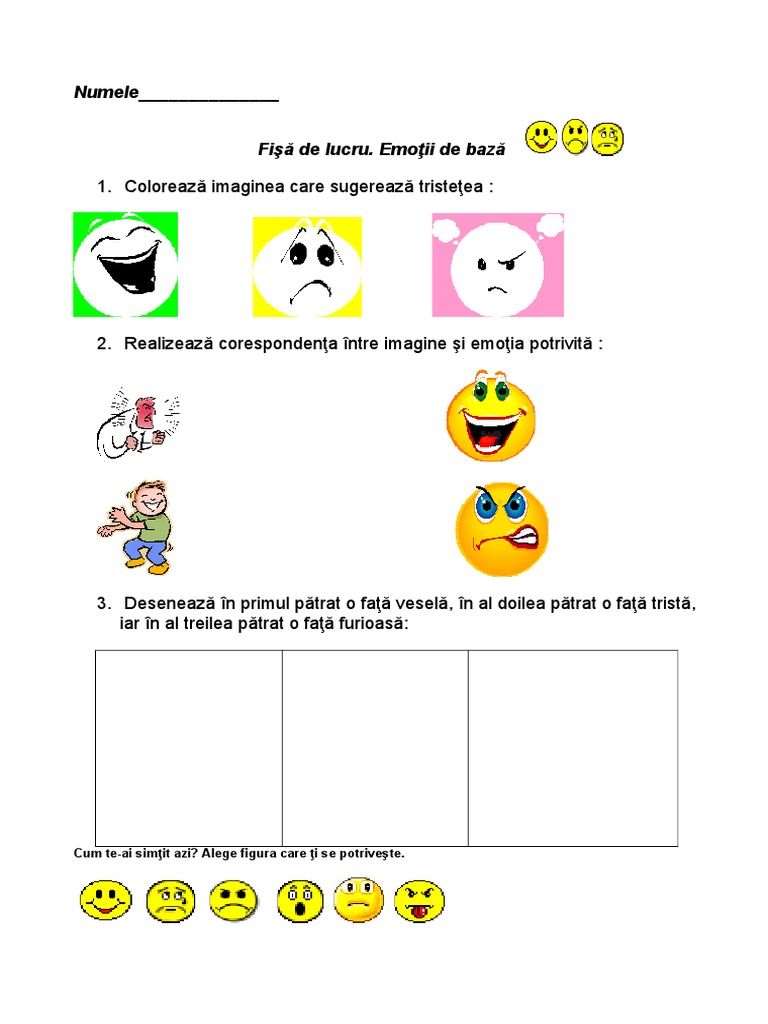 Fisa De Lucru Dezvoltare Personala Emotii