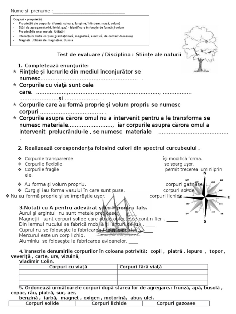 Stiinte Ale Naturii Test Corpuri Proprietati Ale Corpurilor