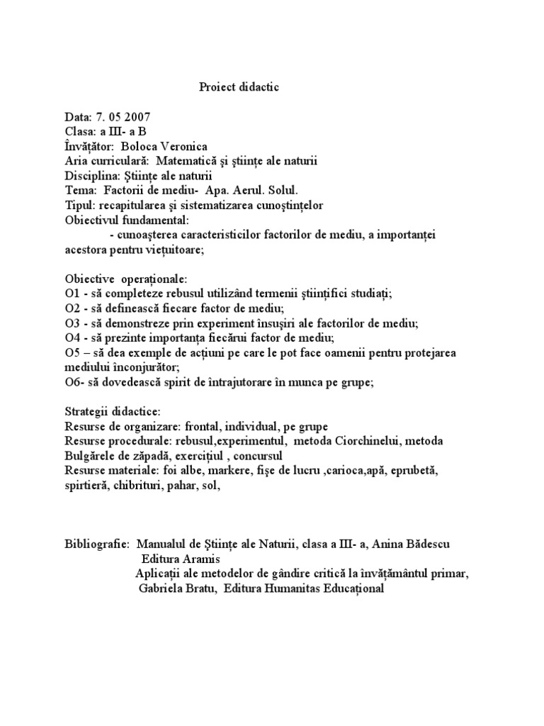 Fise De Lucru Stiinte Ale Naturii Clasa 3