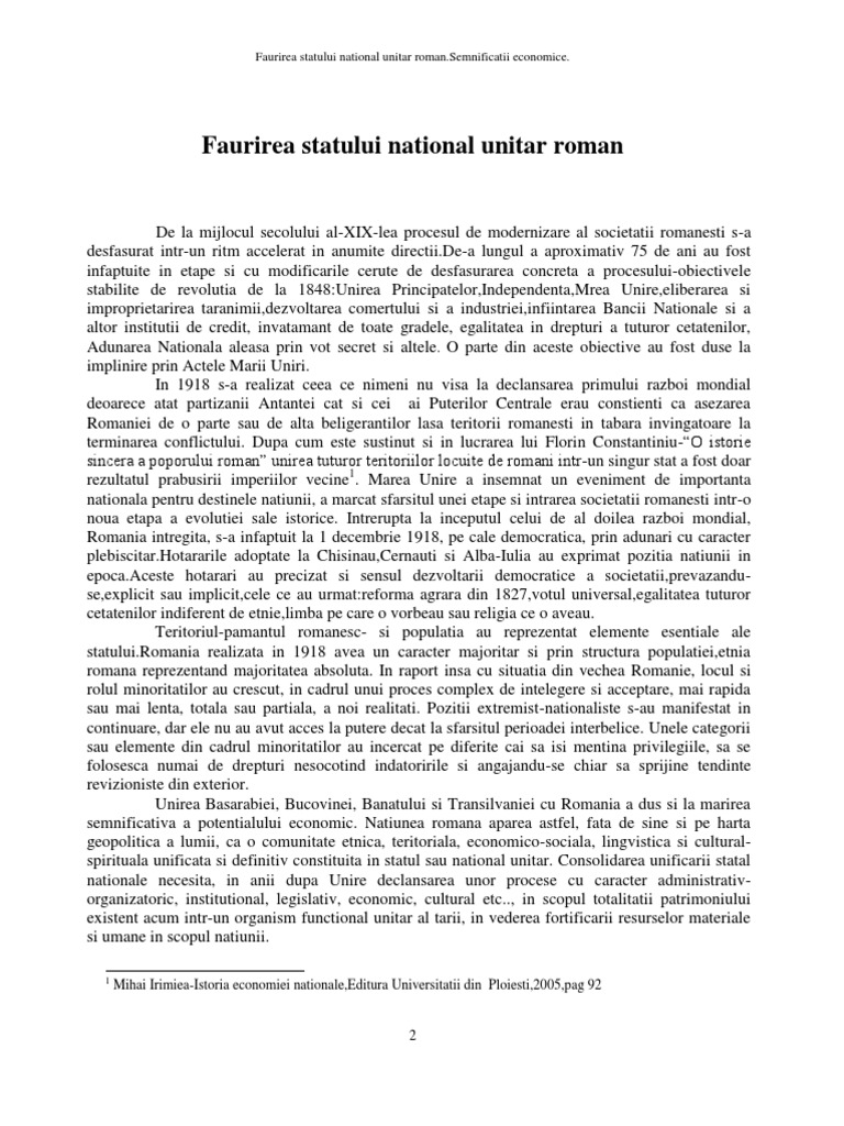 Referat Formarea Statului National Unitar Roman Si Semnificatia Sa Pentru Istoria Contemporana A Romaniei Istoria Romanilor 453