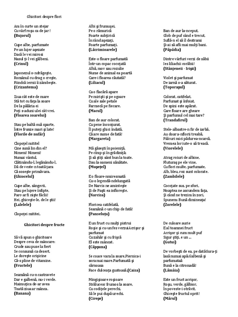 Ghicitori Despre Flori