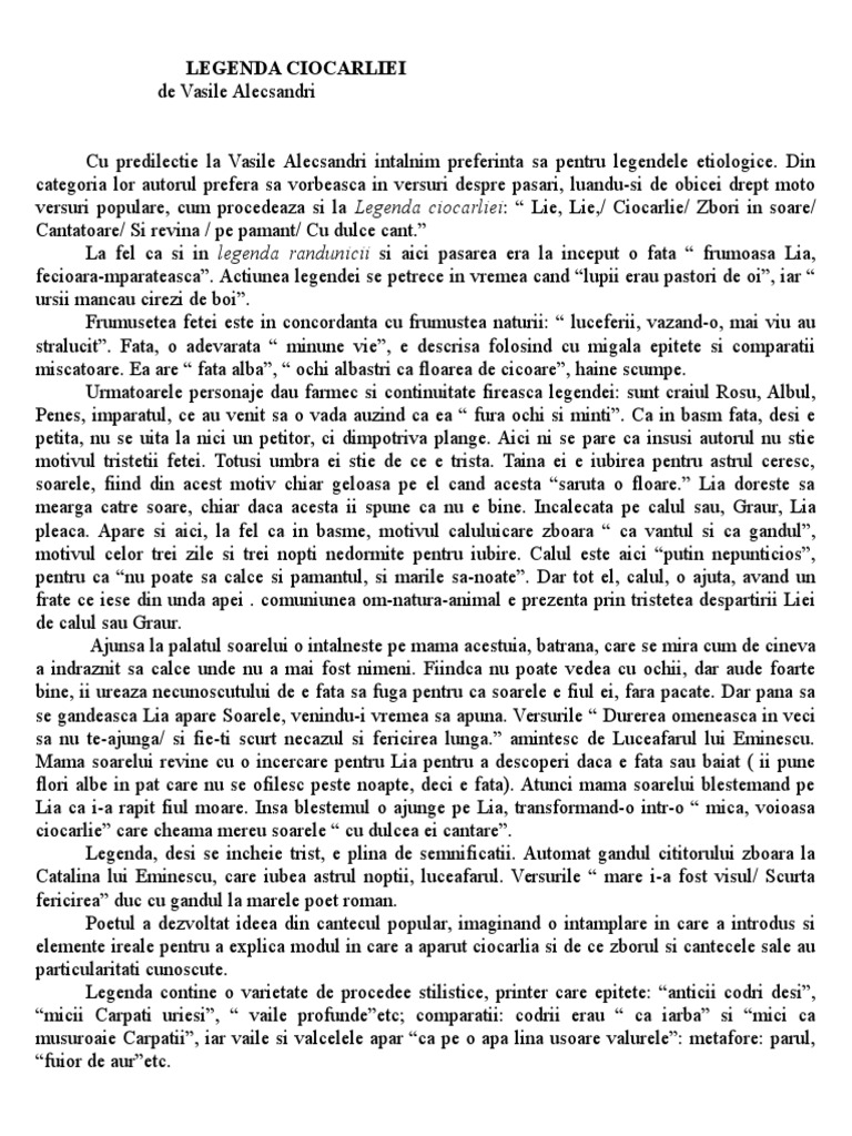 Referat Vasile Alecsandri Legenda Randunicai 328207 Graduo