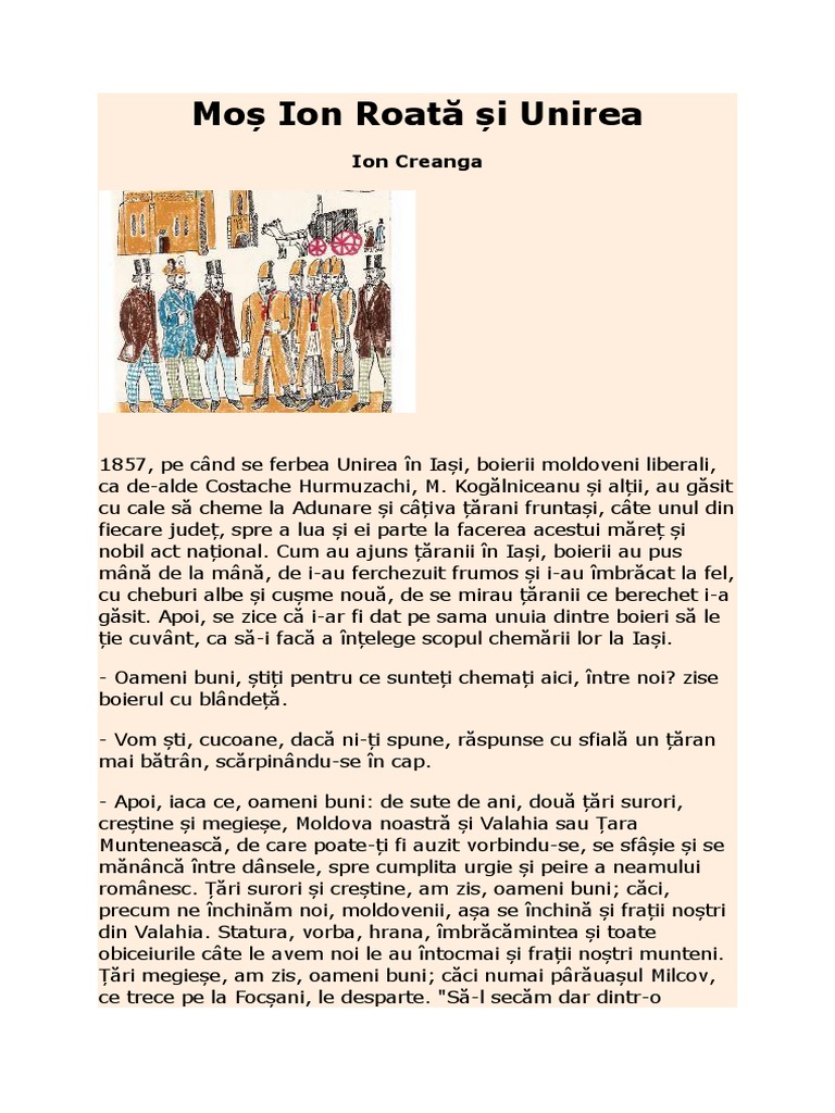 Povesti De Ion Creanga Mos Ion Roata Si Unirea Neamt Online