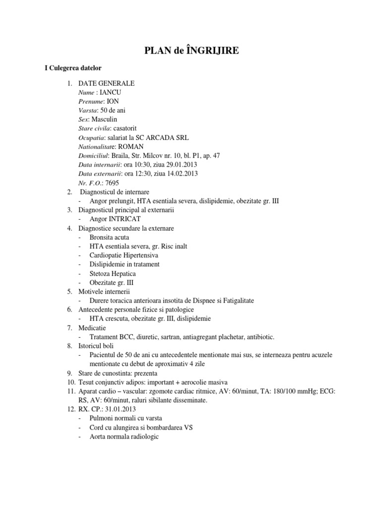 Lucrari De Diploma Ingrijirea Pacientului Cu Angina Pectorala