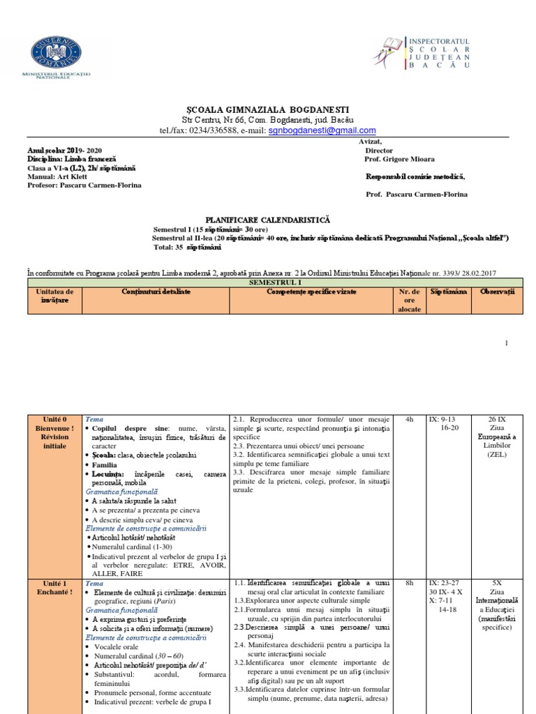 Art Klett Clasa A 6a Planificare Pe Unitati 2019 2020