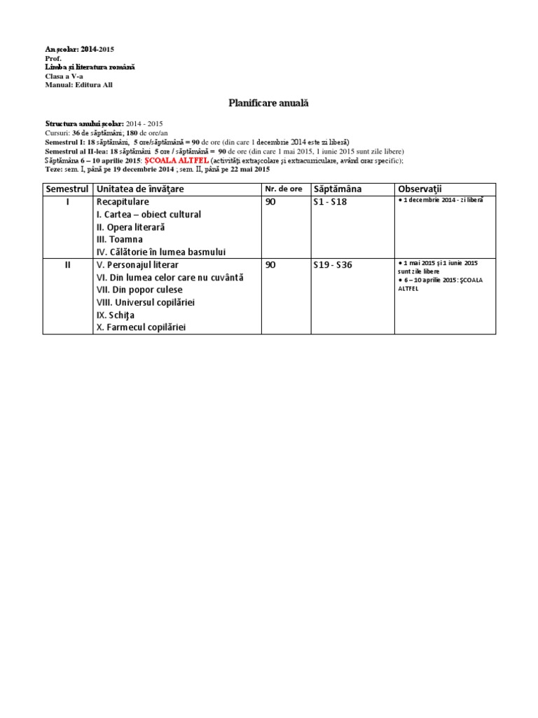 Planificare Anuala Romana 5