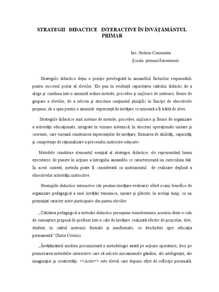 0 Strategii Didactice Interactive In Invatamantul Primar Docx