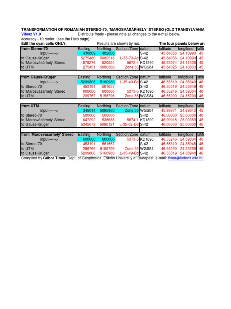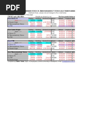 Pdf Transformation Table For Ro Stereo70 Old Hu Marosvasarhely Tirgu Mures Stereographic Grid Utm Exwp Gauss Krueger Coordinates